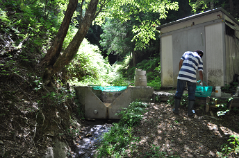 - 油日森林流域では3.34haのS流域、0.63haのR流域で量水堰を設置して流量・河川水質などの観測を行っています。降水の 量や水質も測定しています。森林内の物質循環過程、それによる渓流水の水質形成過程
